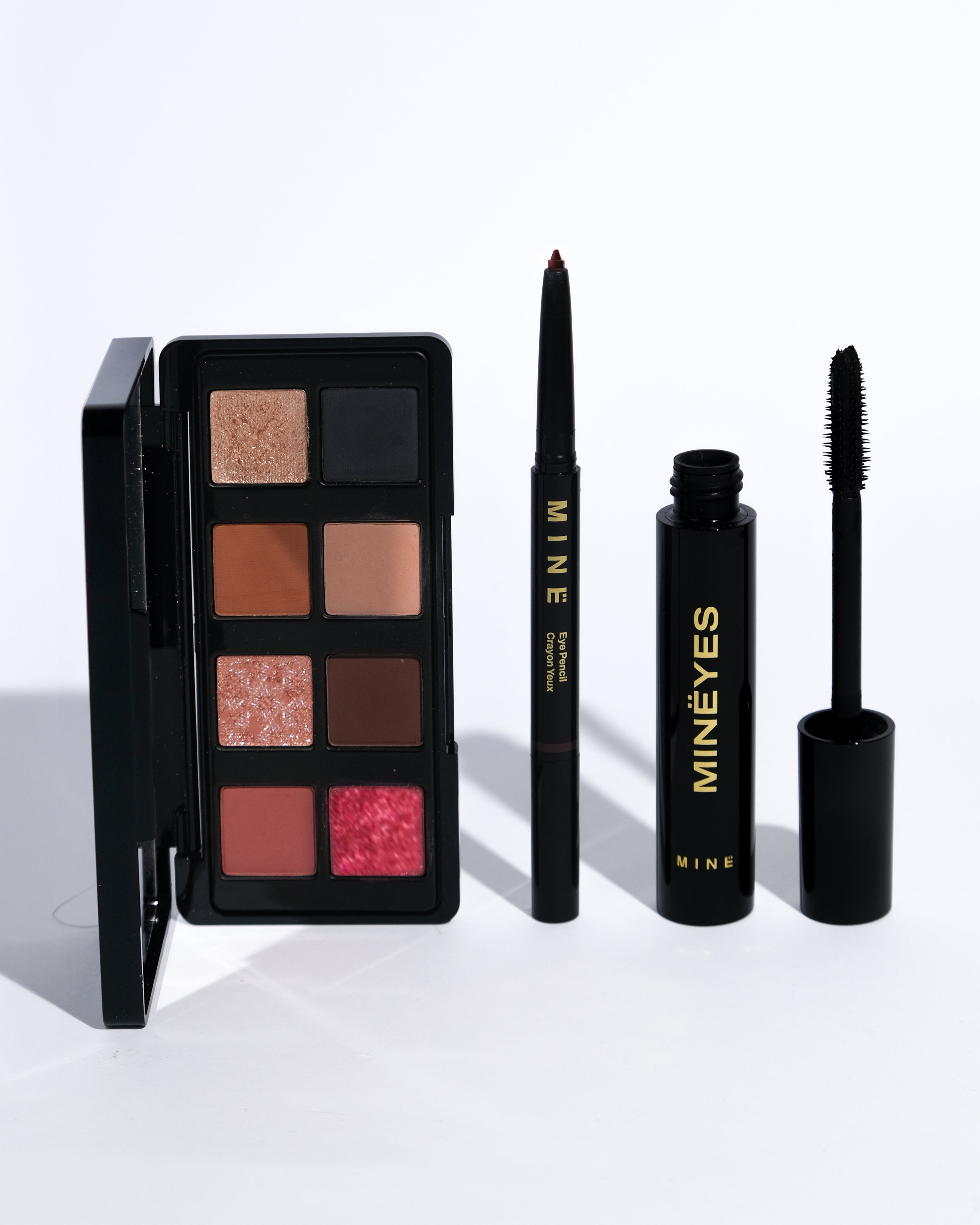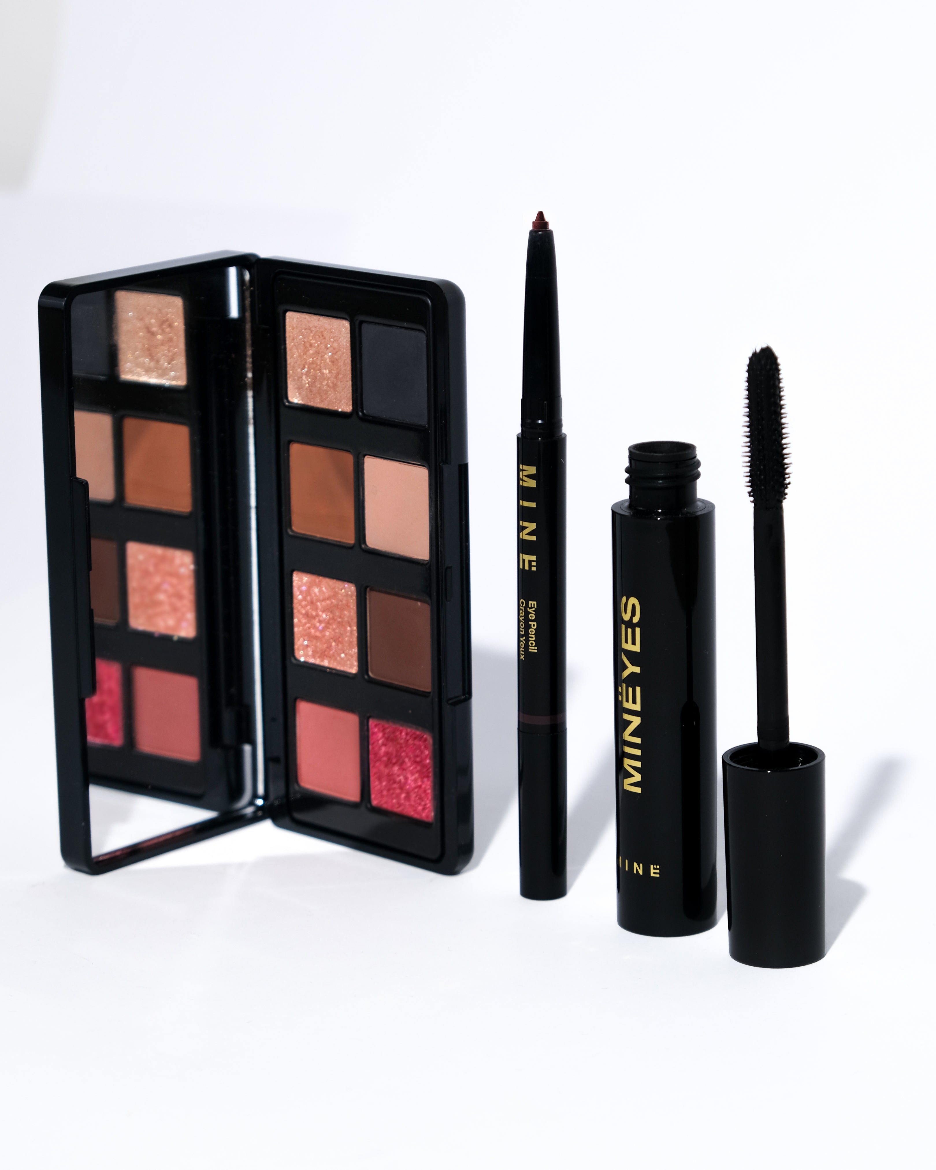 Eye Pencil: - Soft, creamy texture for easy glide and even application - High-coverage color with uniform, rich payoff - Quick-dry formula for long-lasting wear - Waterproof result when tested - Smooth oils that help the lead glide on the skin - Formulated without parabens, talc, and microbeads - No animal-derived ingredients - Made in Italy Mineyes Mascara: - Ultra-black payoff for intense, high-impact definition - Volumizing and lengthening formula that delivers an all-in-one transformative lash look - Creamy, easy-to-apply texture that glides from root to tip without clumping - Smudge-proof performance for flawless wear that lasts - Precision spiked wand designed to grab every lash and amplify in a single coat - Infused with Acacia Plum to enhance long-lasting hold and lash flexibility - Maximum definition thanks to its deeply pigmented, jet-black finish - Made in Italy Meransy Eyeshadow Palette: - Velvet-soft luxury silky powders glide on effortlessly for a seamless blend - Rich dimensional shades with a mix of warm neutrals, deep tones, and radiant pearls sculpt and highlight - Long-wearing formula that ensures all-day elegance and comfort - Mess-free application and minimal fallout for a polished, flawless look - Premium finish that leaves your eyes looking radiant, refined, and undeniably luxurious - Made in Italy
