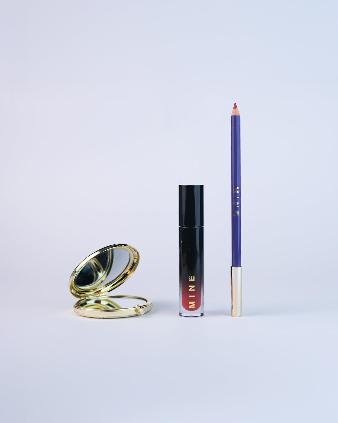 Legacy Liquid Matte Lipstick, the matchy Lip Pencil and the exclusive festive Minë Mirror.